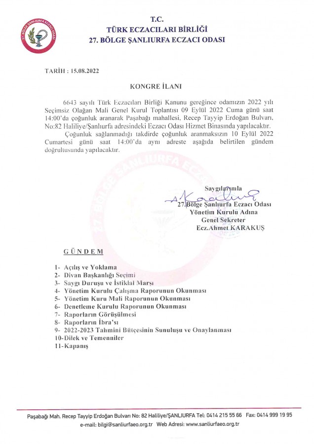 27.BÖLGE ŞANLIURFA ECZACILAR ODASI BAŞKANI