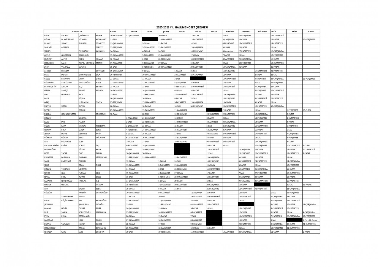 HALİLİYE BÖLGESİ YENİ NÖBET ÇİZELGESİ HK.