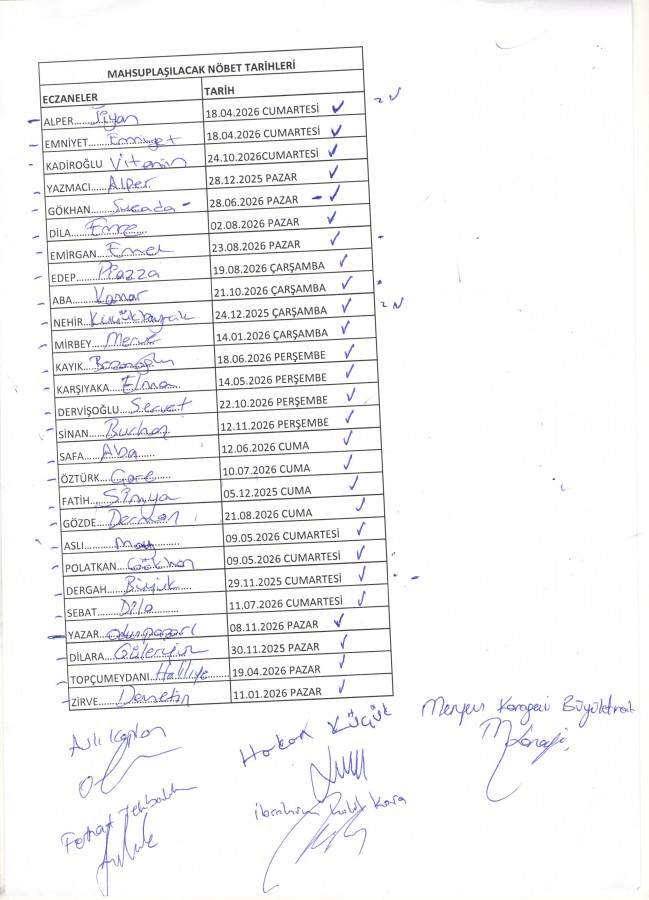 MAHSUPLAŞAN NÖBET GÜNLERİ KURASI HK.