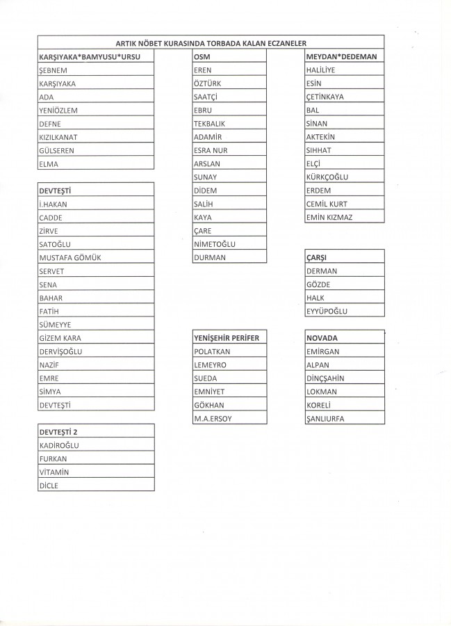 HALİLİYE EK NÖBET KURASI SONUÇLARI