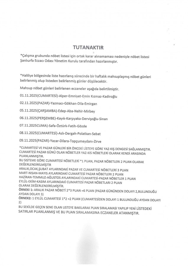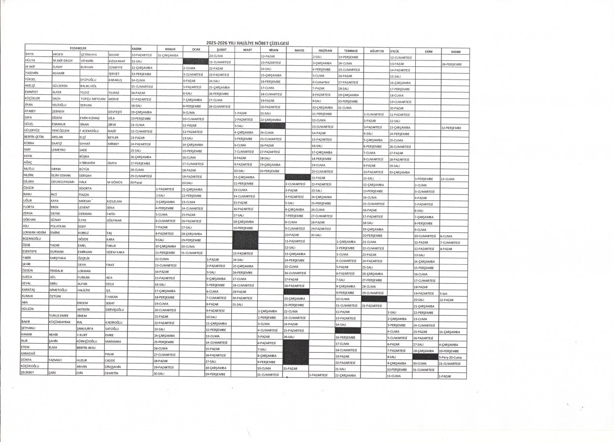 HALİLİYE YENİ NÖBET ÇİZELGESİ
