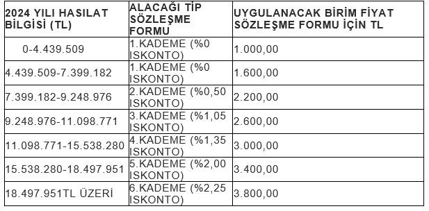 Aşağıda belirtilen iskonto oranları, hasılat bilgileri