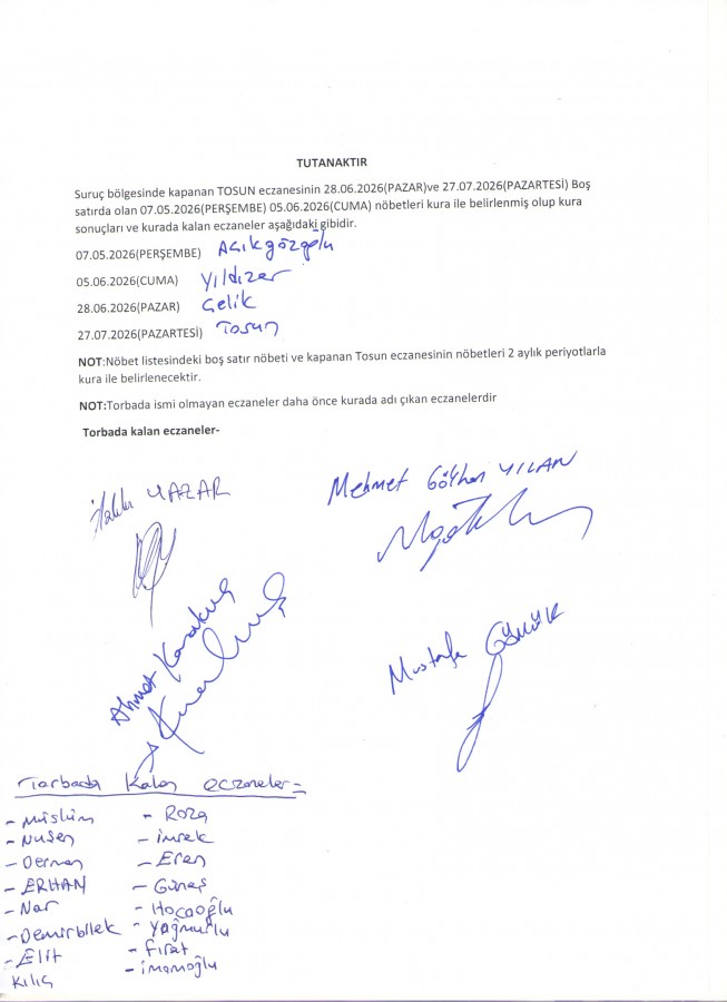 SURUÇ BÖLGESİ EK NÖBET KURA SONUÇLARI HK.