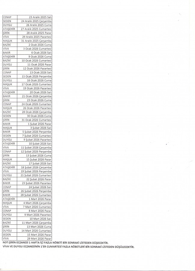 MAŞUK BÖLGESİ YENİ NÖBET LİSTESİ